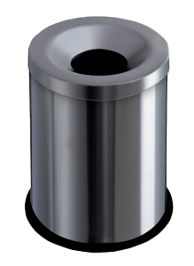 AISI 430 stainless steel waste paper bin, 15 L, with self-extinguishing lid, diam. 266 x h 330 mm