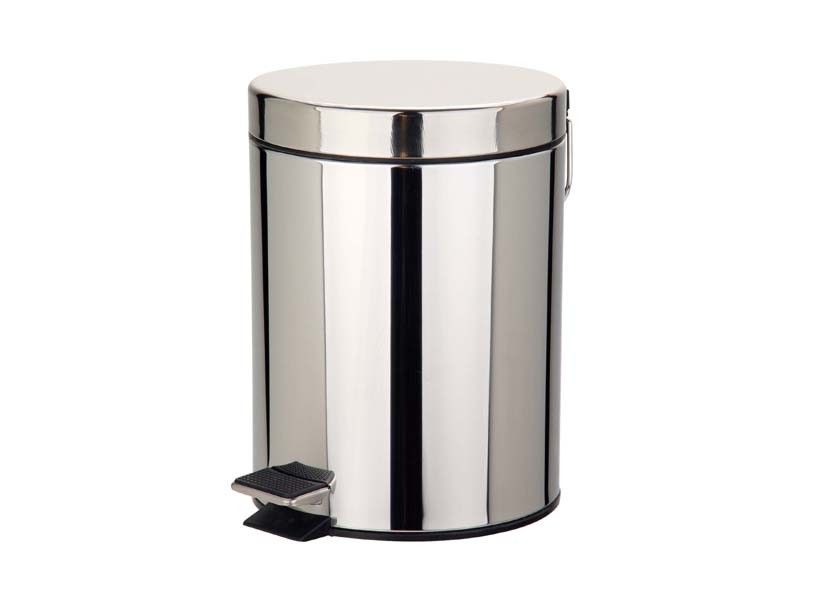 Cylindrical pedal bin in polished stainless steel, 5 litres