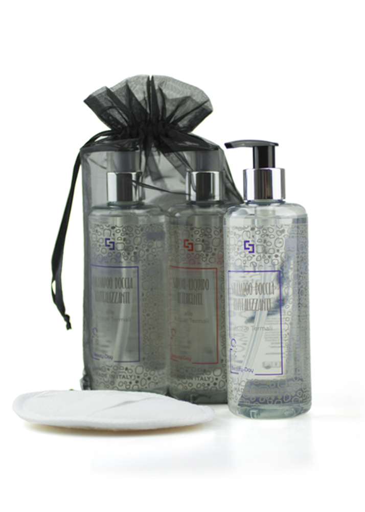 The Beauty-Day Italy Gift Set is a amenities line solution designed for hospitality businesses that want to offer their guests a refined wellness experience consistent with quality standards. This kit includes shower shampoo, liquid soap in a 300 ml dispenser, and a scrubbing sponge, all packaged in an elegant tulle bag, ideal for presentations in the guest room, bathroom, or as a welcome kit.