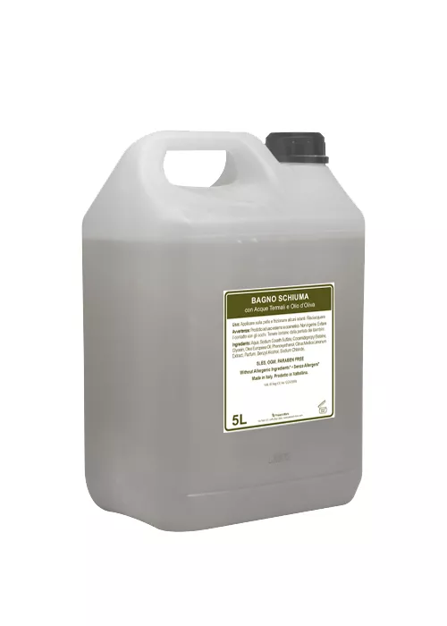 The professional 5-liter format is designed to optimize consumption and refills: it is suitable for refilling Beauty Oil bottles and is practical for managing stocks in facilities with medium to high volumes. Choosing the 5-liter Beauty Oil bath foam with thermal water and olive oil means choosing a convenient and functional refill, designed for distribution in B2B contexts.