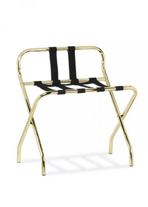 Chrome-plated steel luggage rack with PVC edge and straps for hotels and hospitality facilities