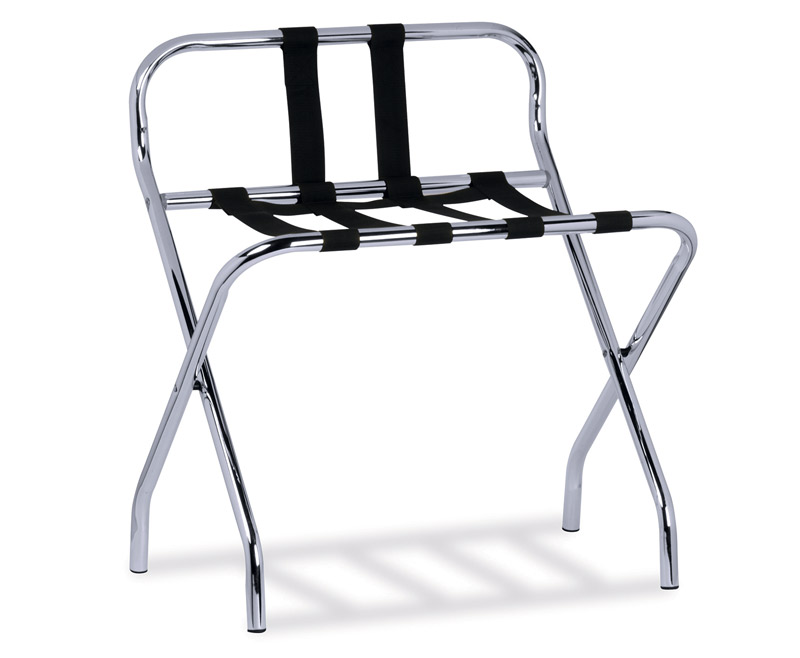 Chrome-plated steel luggage rack with PVC straps for hotels and hospitality facilities