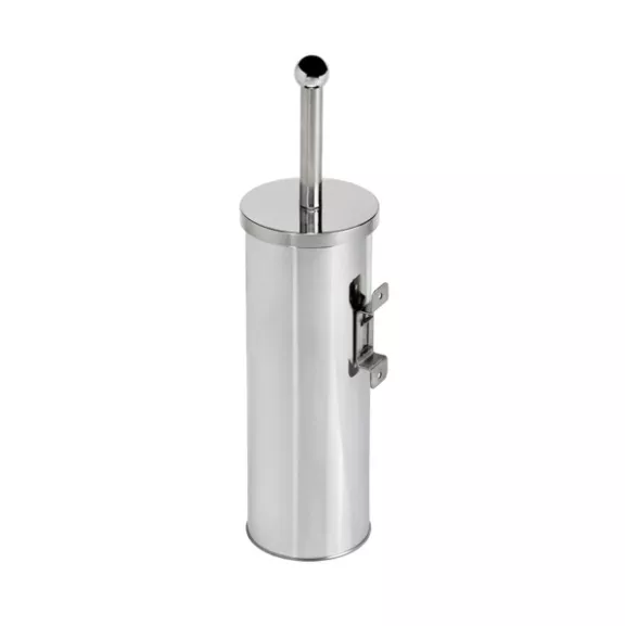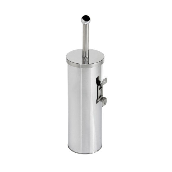 Cylindrical wall-mounted toilet brush holder in polished steel