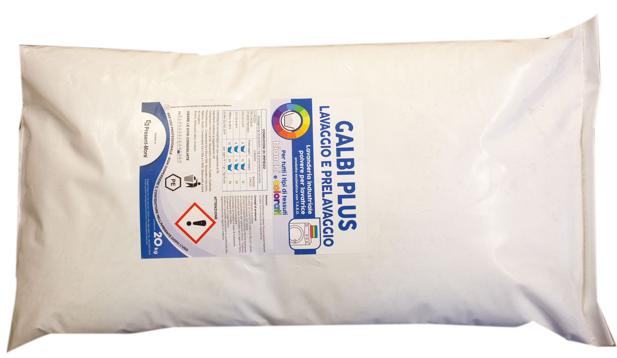 The 20kg bag meets the needs of in-house laundries and hospitality businesses seeking a enzymatic washing powder in a professional format. A great choice for those looking for a detergent with active enzymes and a formula designed to remove tough dirt without additional steps like pre-washing or fabric softener.