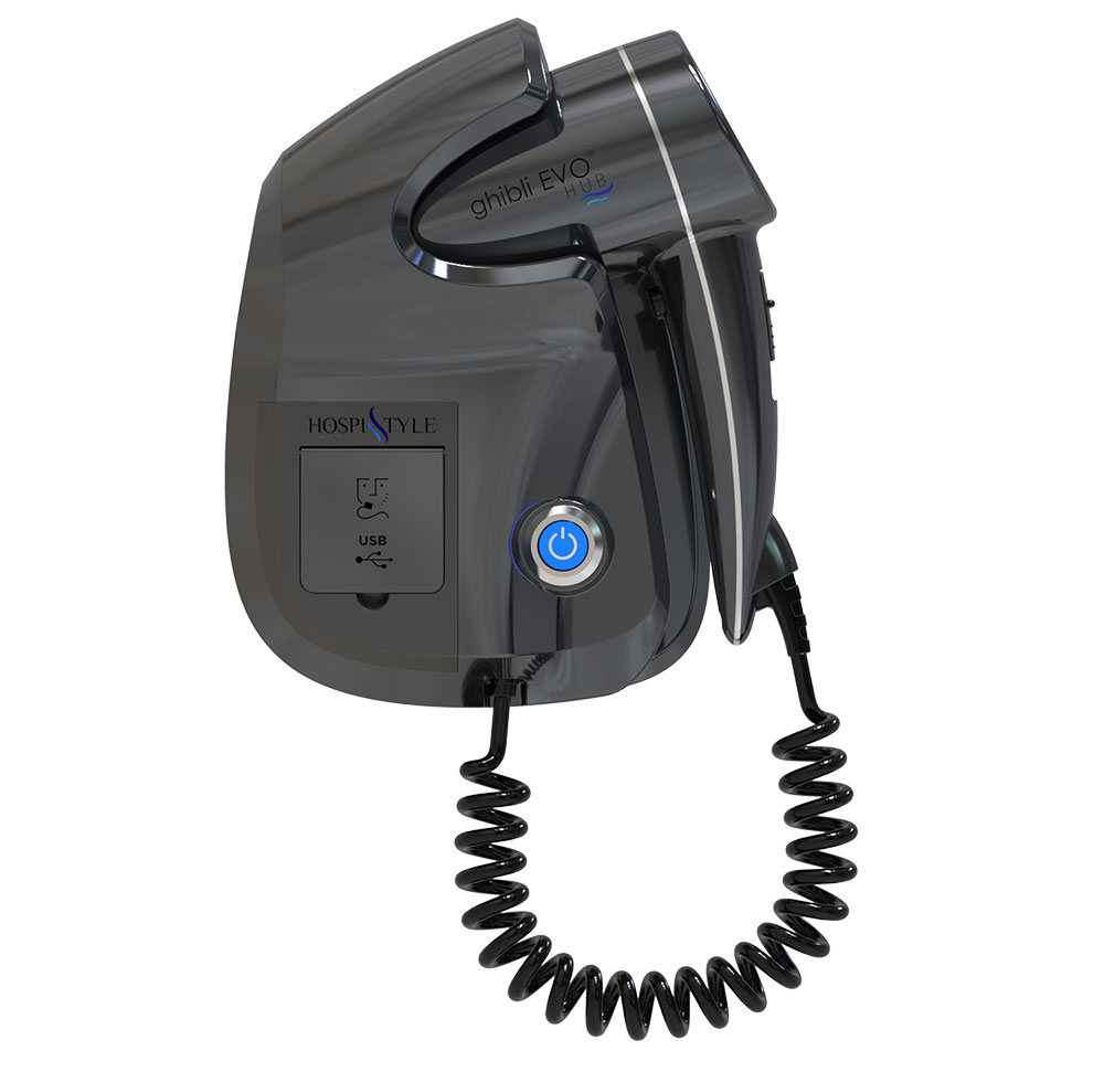 Ghibli Evo Hub Hair Dryer, Gray: 2000W Wall-Mounted Solution for Hospitality Facilities