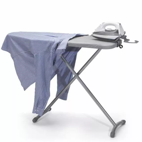Designed for professional settings, the iron with folding board is suitable for bedrooms and utility areas, offering a complete station in a single set. It's a practical choice for those who need to equip multiple rooms with an accessory consistent with hospitality standards. The ability to store it in a closet makes it suitable for both staff use and guest use, depending on the facility's layout.