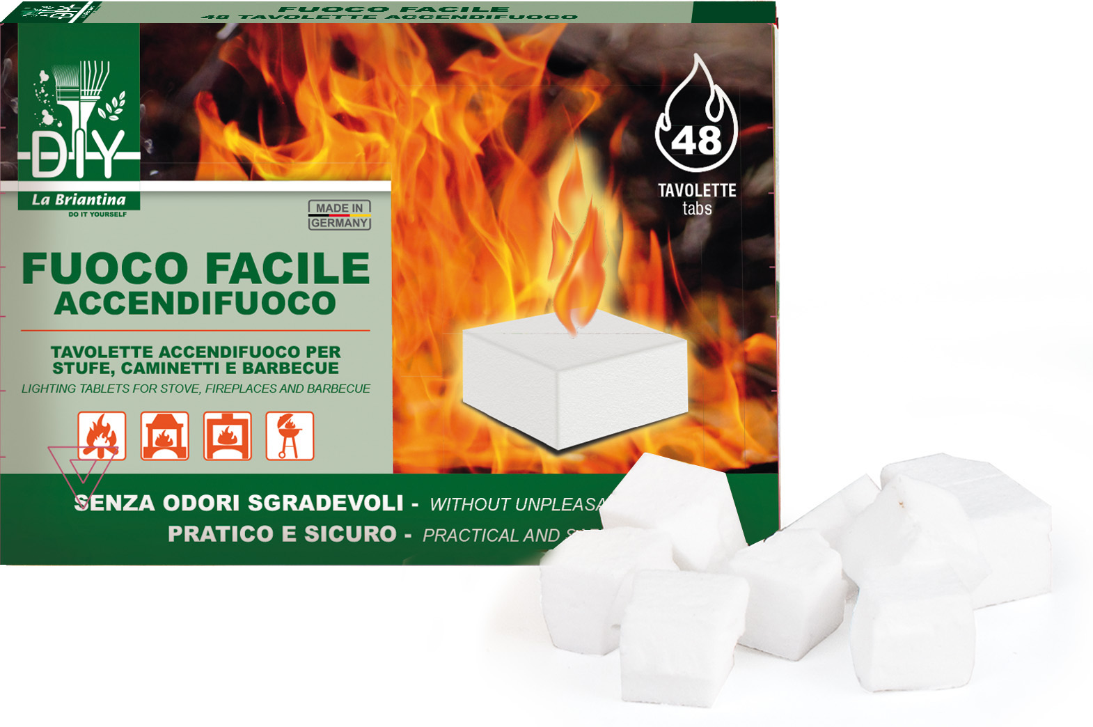 Designed to support quick and easy lighting, the firelighter tablet is perfectly suited to a variety of professional needs: from preparing barbecues for guests and clients to organizing outdoor spaces in campsites and holiday villages. The convenience of the tablet format helps standardize operations, simplifying daily tasks and reducing unexpected problems when starting a fire.
