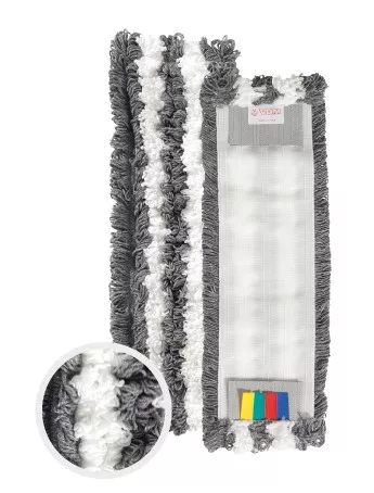 This microfiber mop for floor cleaning is suitable for high-traffic environments such as hotels, bars, restaurants, and more generally hospitality facilities, where cleaning must be effective and repeatable. The microfiber mop for the "clack" frame easily integrates into professional cleaning equipment, helping to optimize operators' work and maintain high standards in public spaces.