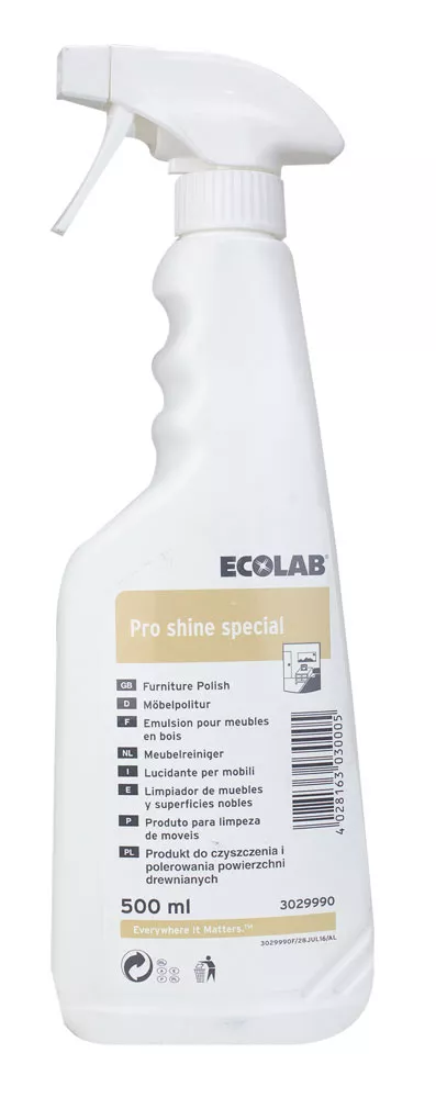 In B2B businesses, consistent results are essential: this protective wood cleaner supports cleaning and maintenance operations on frequently used furnishings and surfaces, such as tables, countertops, and wooden accessories in guest rooms, common areas, and dining areas. The 500 ml format is suitable for easy handling in service carts and warehouses.