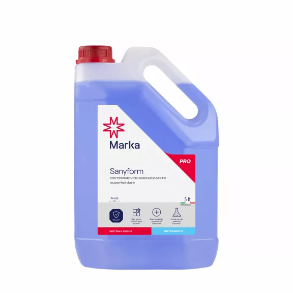 The 5-liter canister packaging makes this Sanyform floor cleaner with salts a practical choice for the B2B channel: a professional format designed to optimize consumption and support ongoing cleaning routines. If you're looking for a large-format Sanyform floor cleaner with salts, this solution meets the typical supply needs of the hospitality sector.