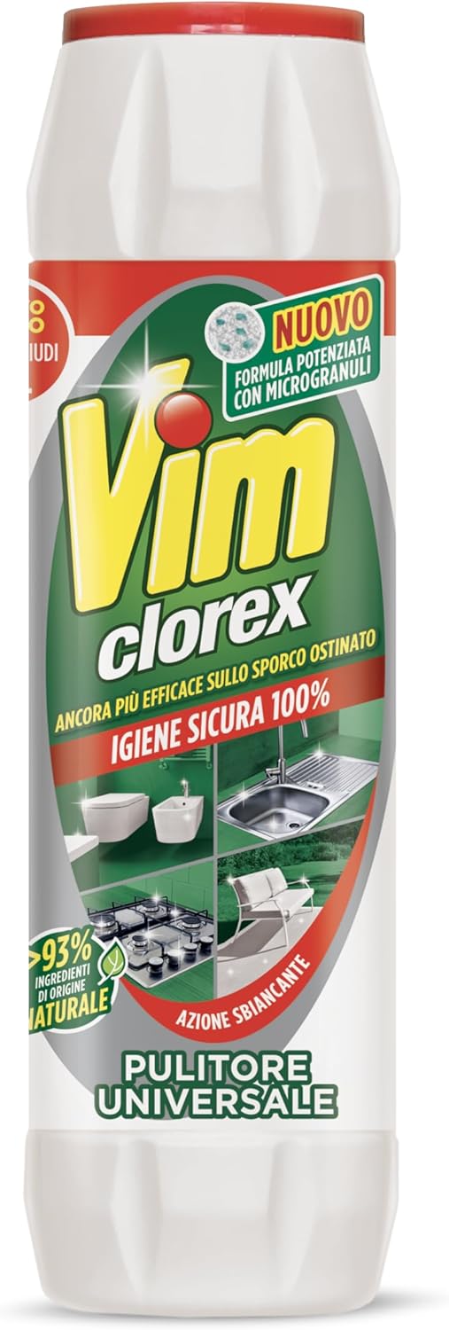 The Vim Powder formulation is designed to target encrustations and the most resistant residues: the microgranules help enhance the product's effectiveness, supporting the removal of stubborn dirt. Its degreasing and whitening effect makes Vim powder a reliable ally for those seeking a multipurpose cleaner capable of delivering consistent performance in a variety of cleaning situations.