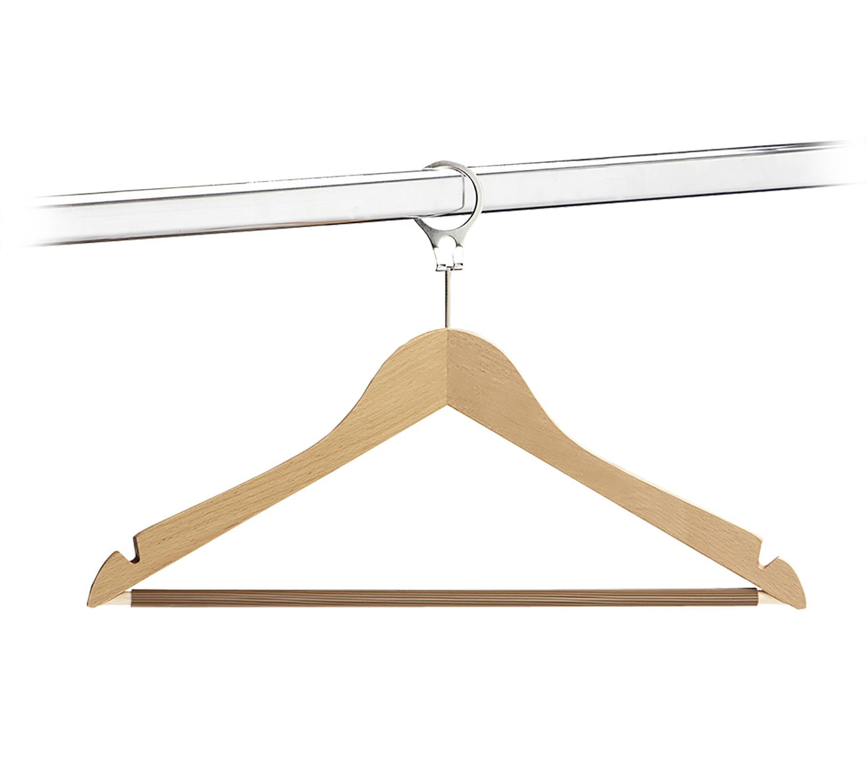 The distinctive feature of this wooden hanger with anti-theft ring is the metal anti-theft ring, designed to facilitate the management of hangers in guest rooms and reduce losses. In high-volume environments such as hotels and guesthouses, the anti-theft ring helps maintain a more stable supply over time and simplifies the work of the staff responsible for preparing rooms.