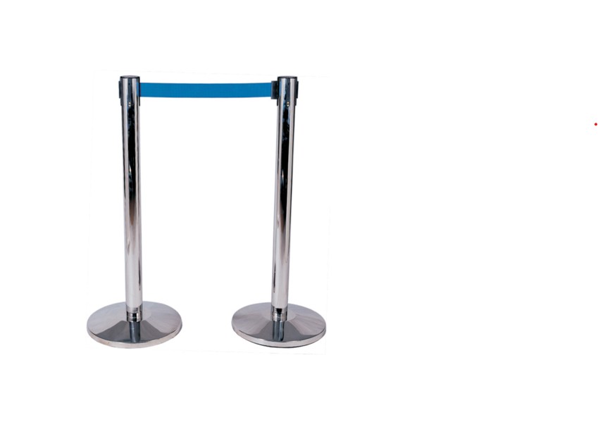 Colonna in metallo nero con nastro blu retrattile per la limitazione di spazi e la creazione di percorsi obbligati, confezione 2pz, ideale per hotel e strutture ricettive