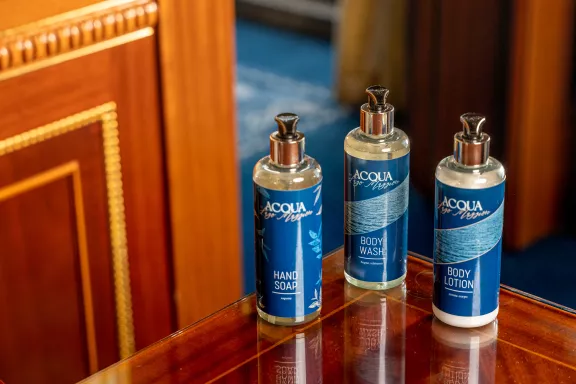 Tutti i cosmetici delle forniture alberghiere personalizzate vengono testati nei nostri laboratori interni con controlli chimici e microbiologici. Disponiamo di macchinari di alta qualità per la stampa su diversi materiali e l'applicazione precisa delle etichette: massima cura, rapidità e flessibilità.